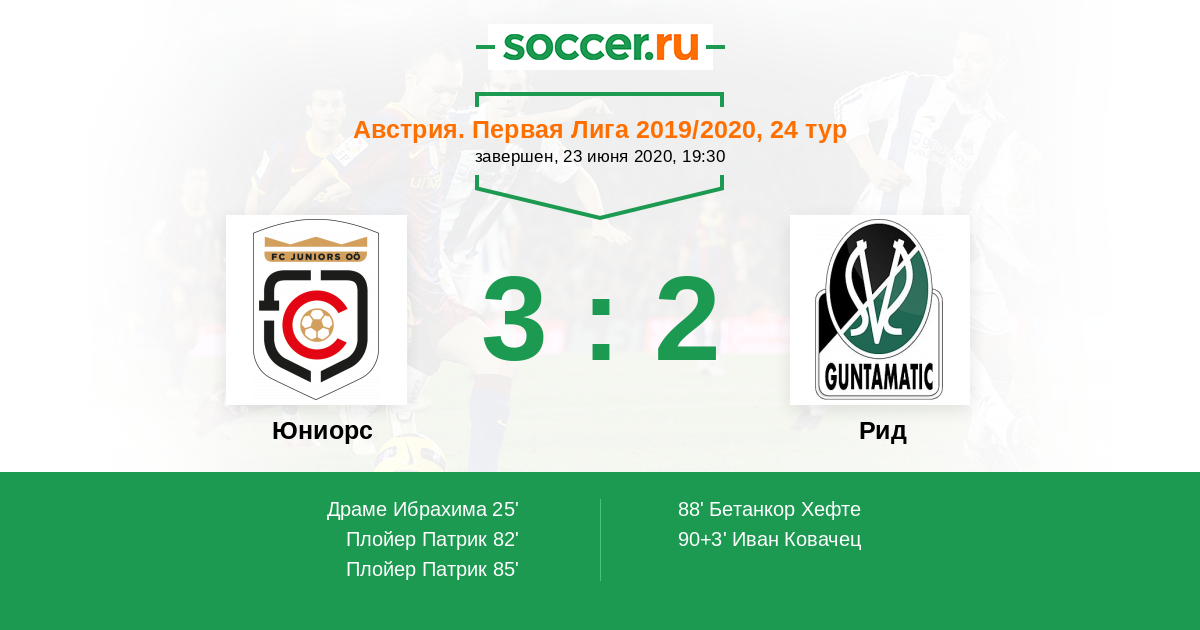 Протокол матча Юниорс против Рид