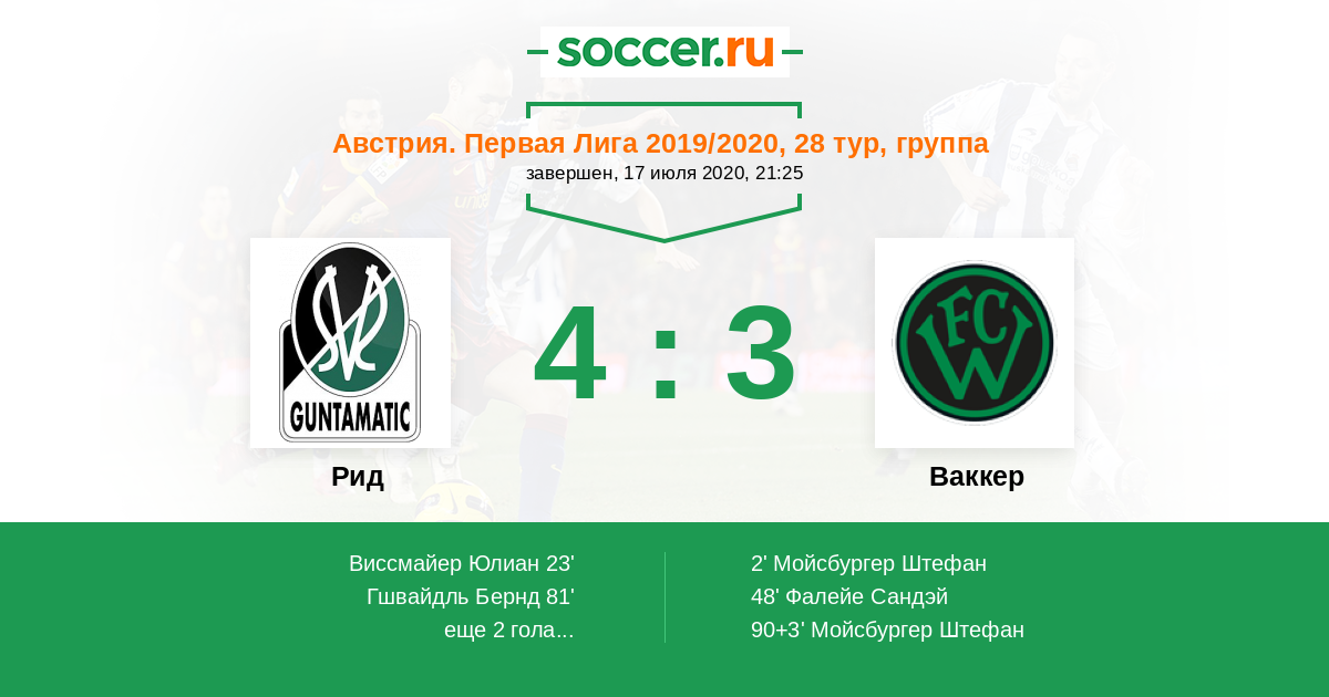 90+4' (4:3) Гшвайдль Бернд (9) (Рейнер Константин (6))