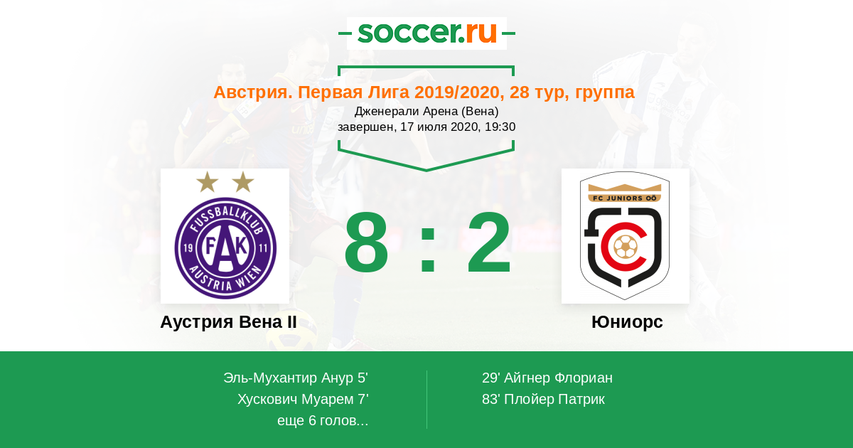 Протокол матча Аустрия Вена II против Юниорс