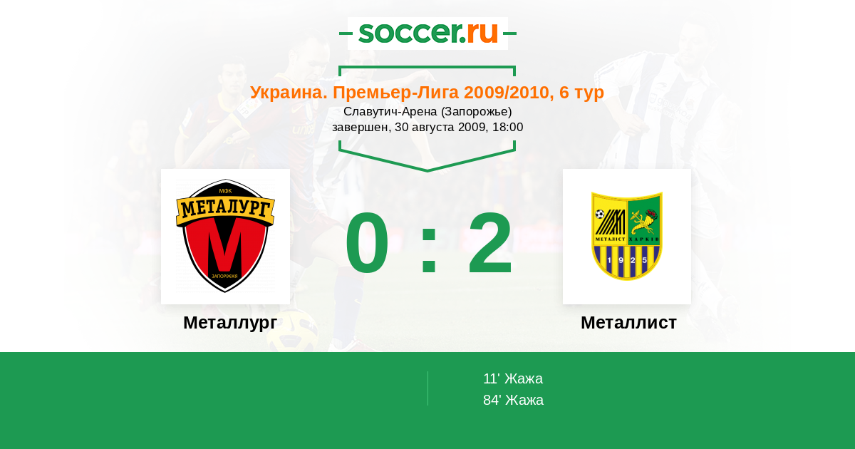 Протокол матча Металлург против Металлист