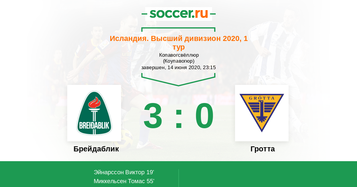 Протокол матча Брейдаблик против Гротта