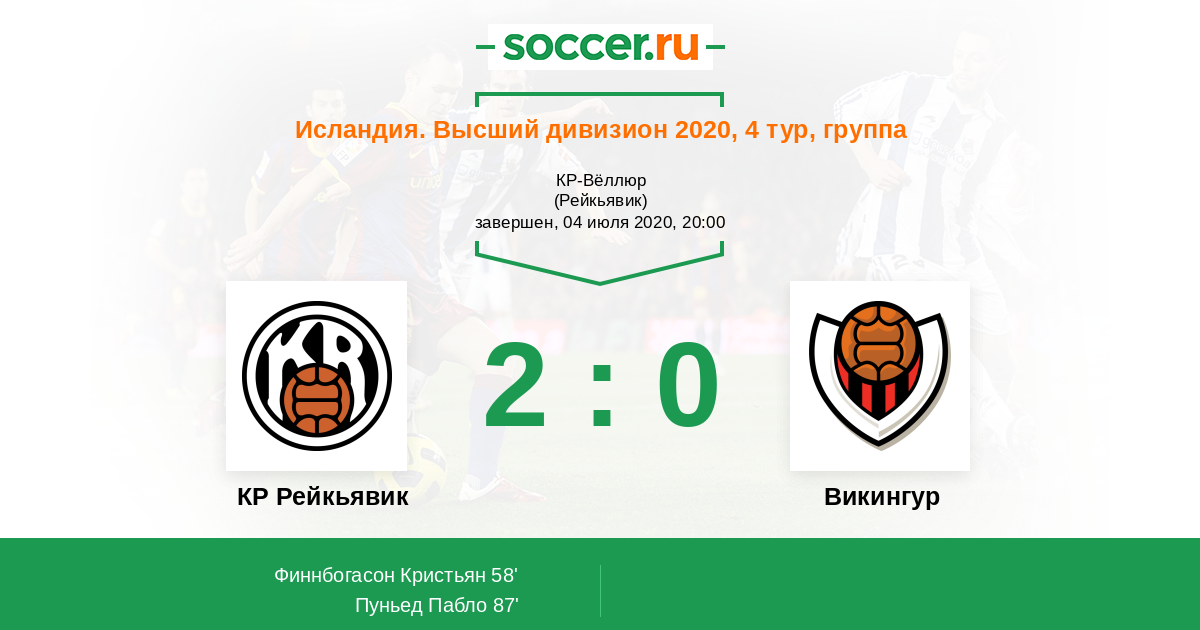 58' (1:0) Финнбогасон Кристьян (21) (Сигурйонссон Атли (23))