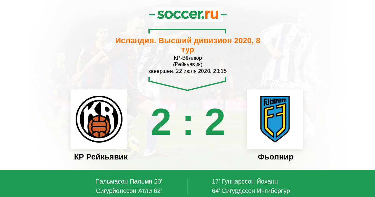 Протокол матча КР Рейкьявик против Фьолнир