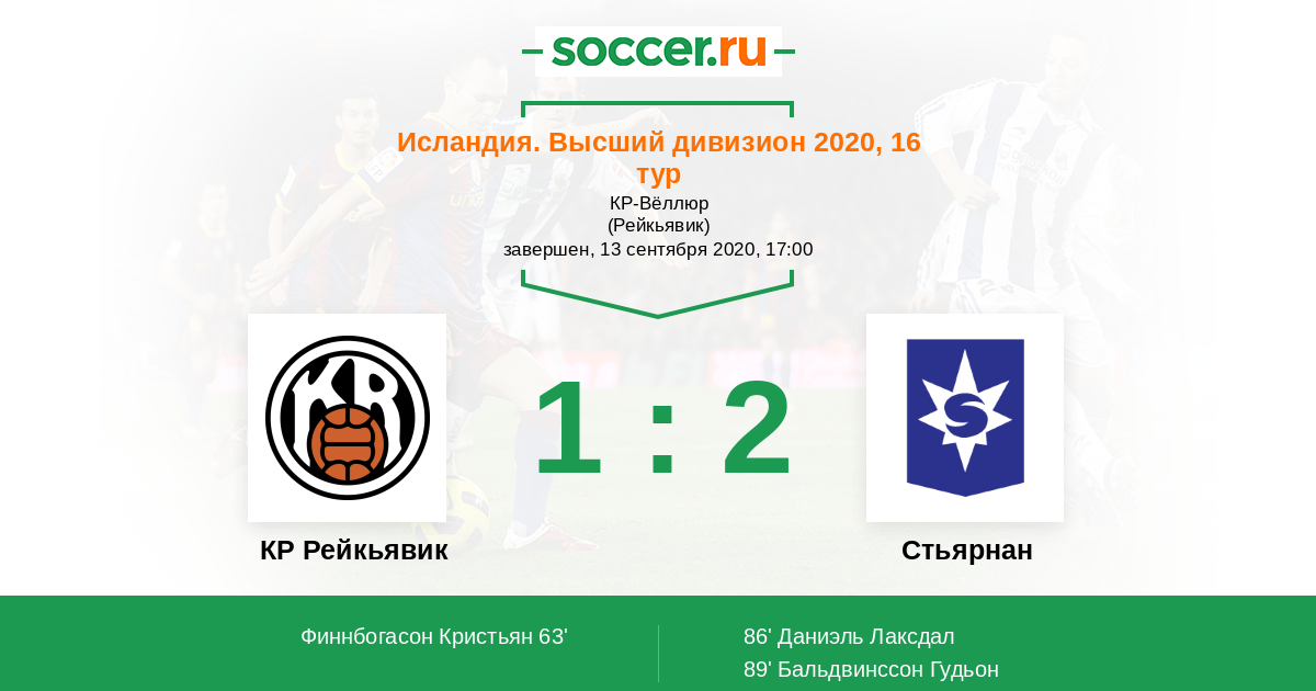 Протокол матча КР Рейкьявик против Стьярнан