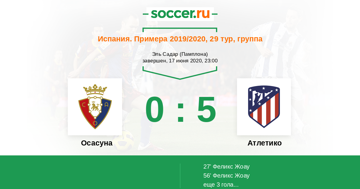 Протокол матча Осасуна против Атлетико