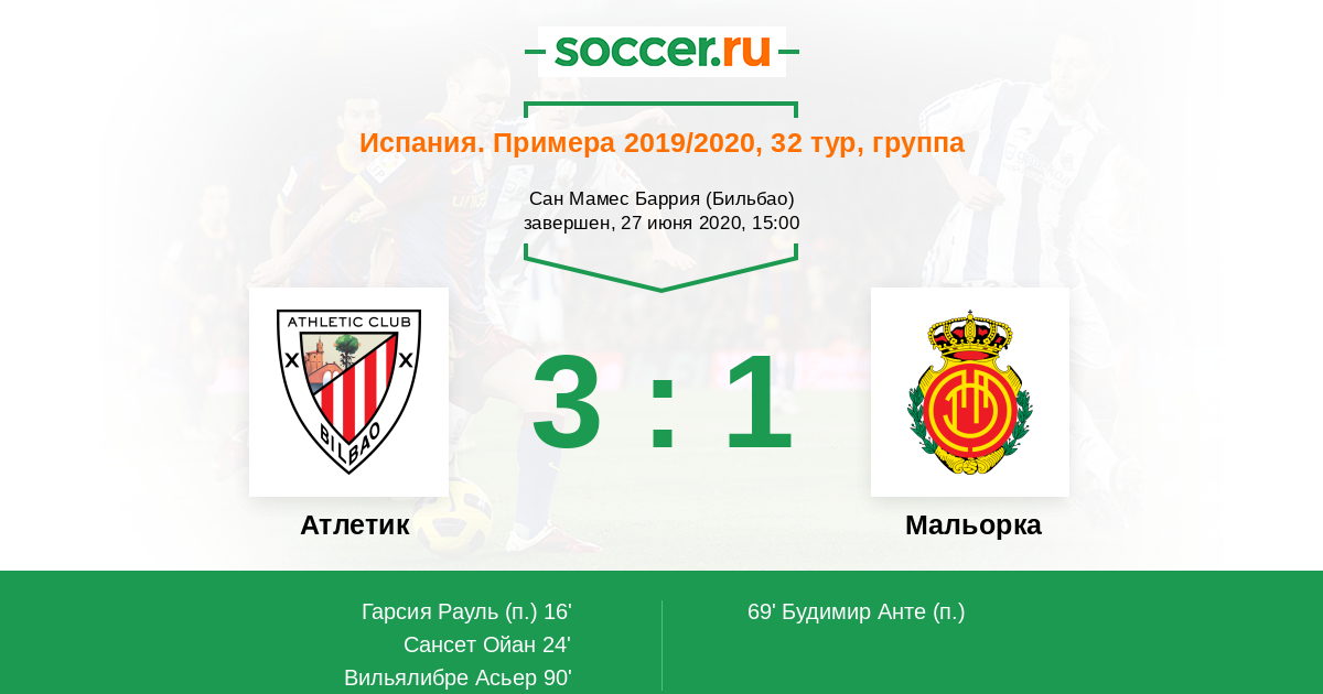 Протокол матча Атлетик против Мальорка