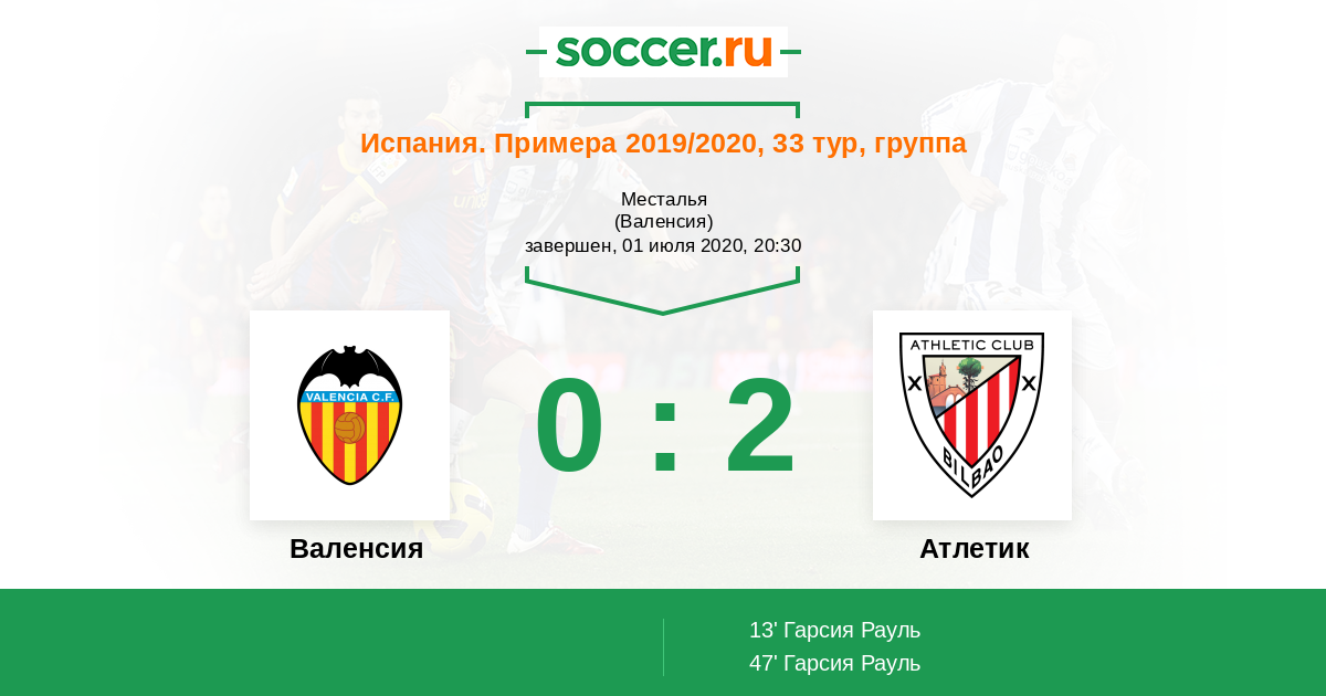 Протокол матча Валенсия против Атлетик
