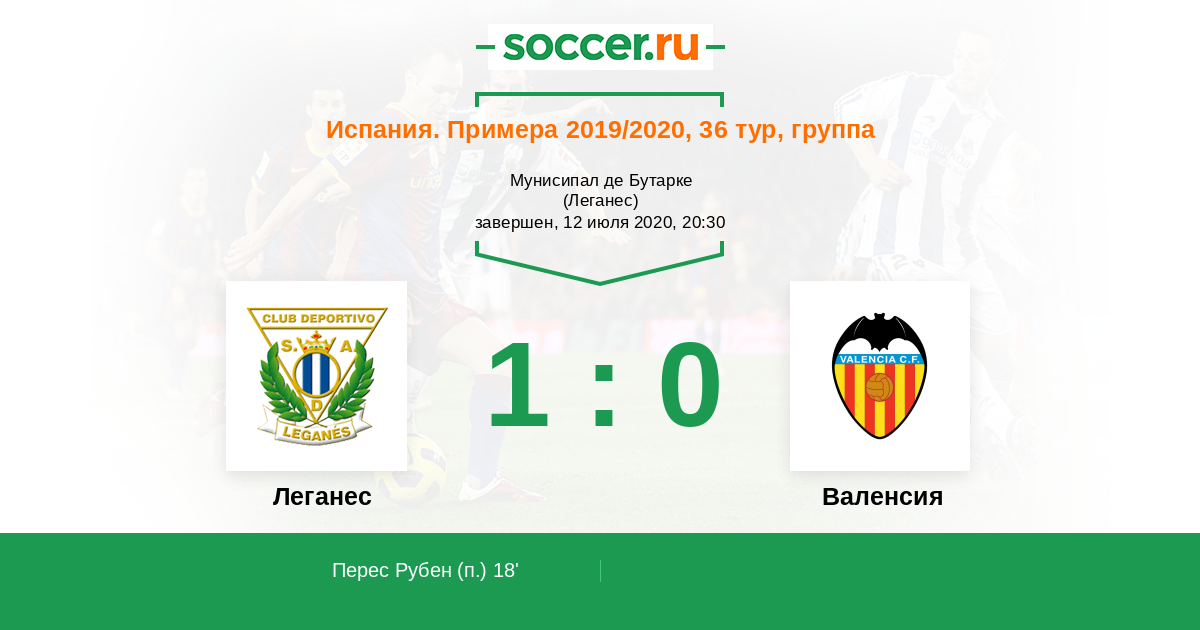 Протокол матча Леганес против Валенсия
