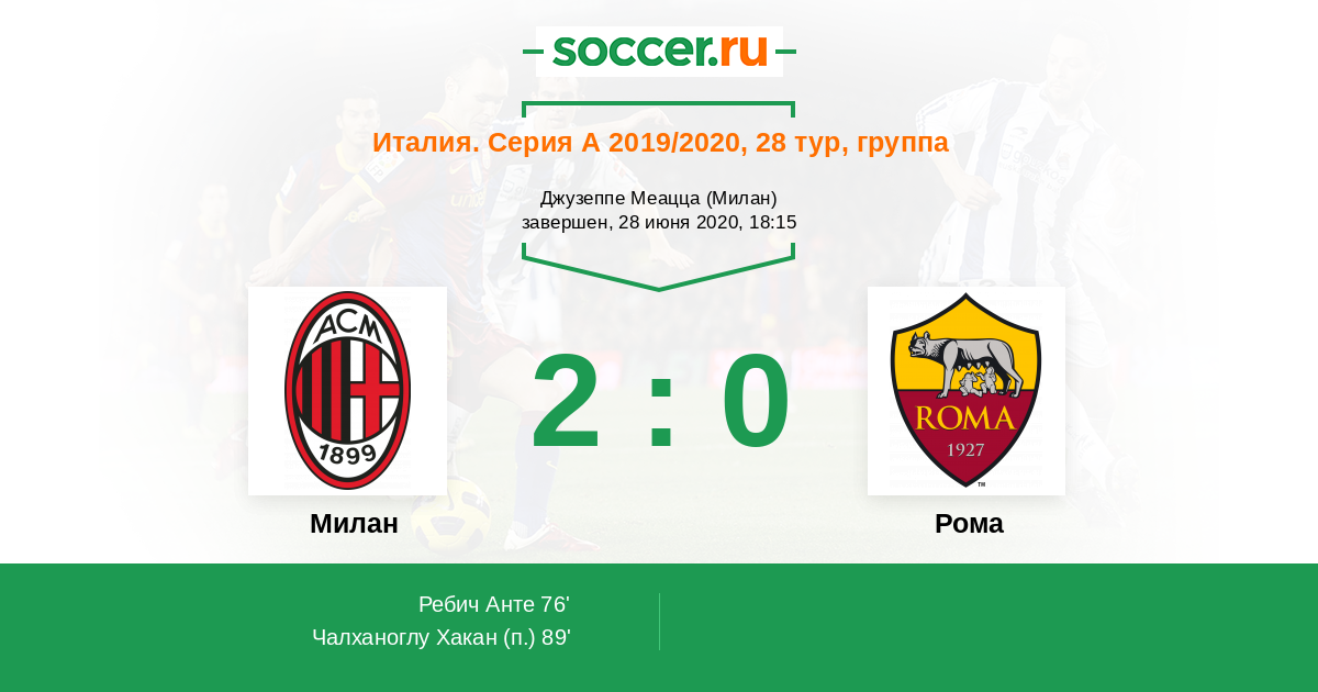 Протокол матча Милан против Рома