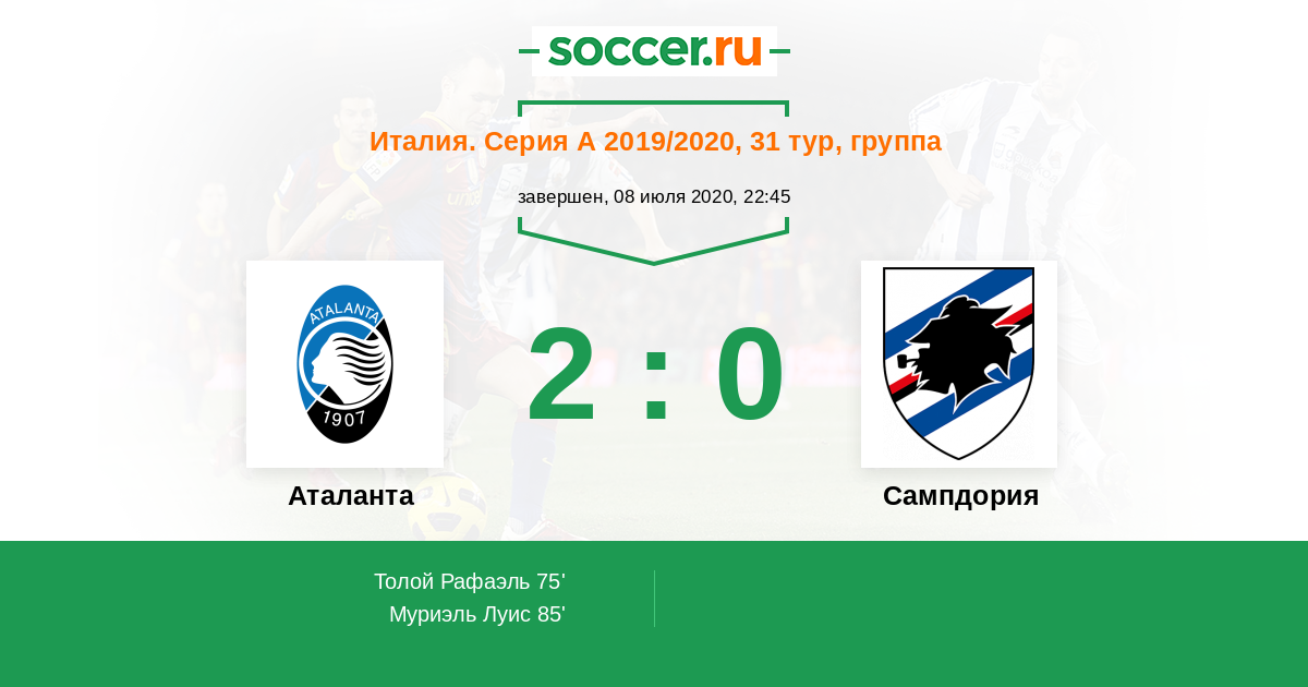 Протокол матча Аталанта против Сампдория