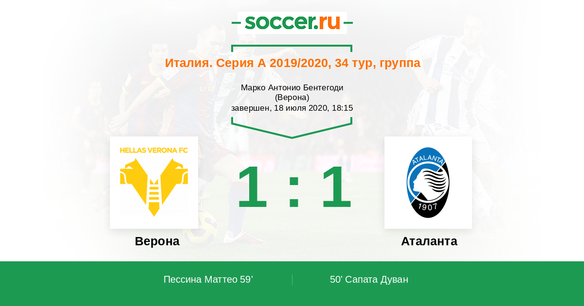 Вот и ваша хваленая Атланта!! Верона это не Брешия и Лечче чтобы по 6-7 мечей пускать. Команда крепкая, отобравшая очки у Интера, у Лацио и у Ювентуса в этом сезоне. Теперь вот и бегамаскам бой дали.
