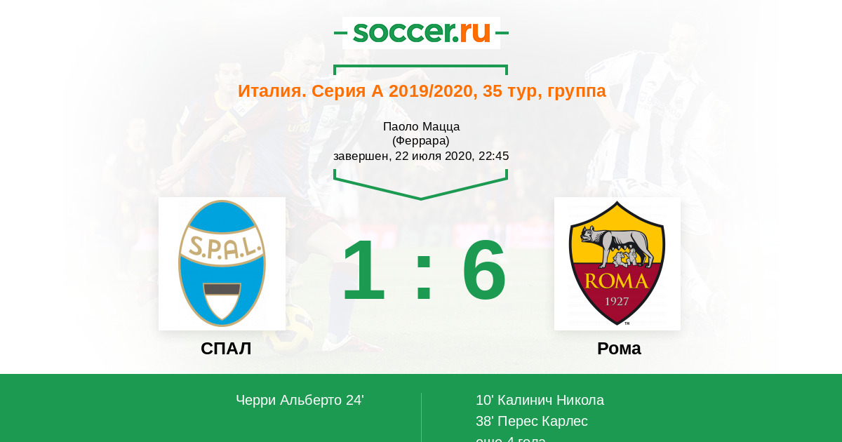 Протокол матча СПАЛ против Рома