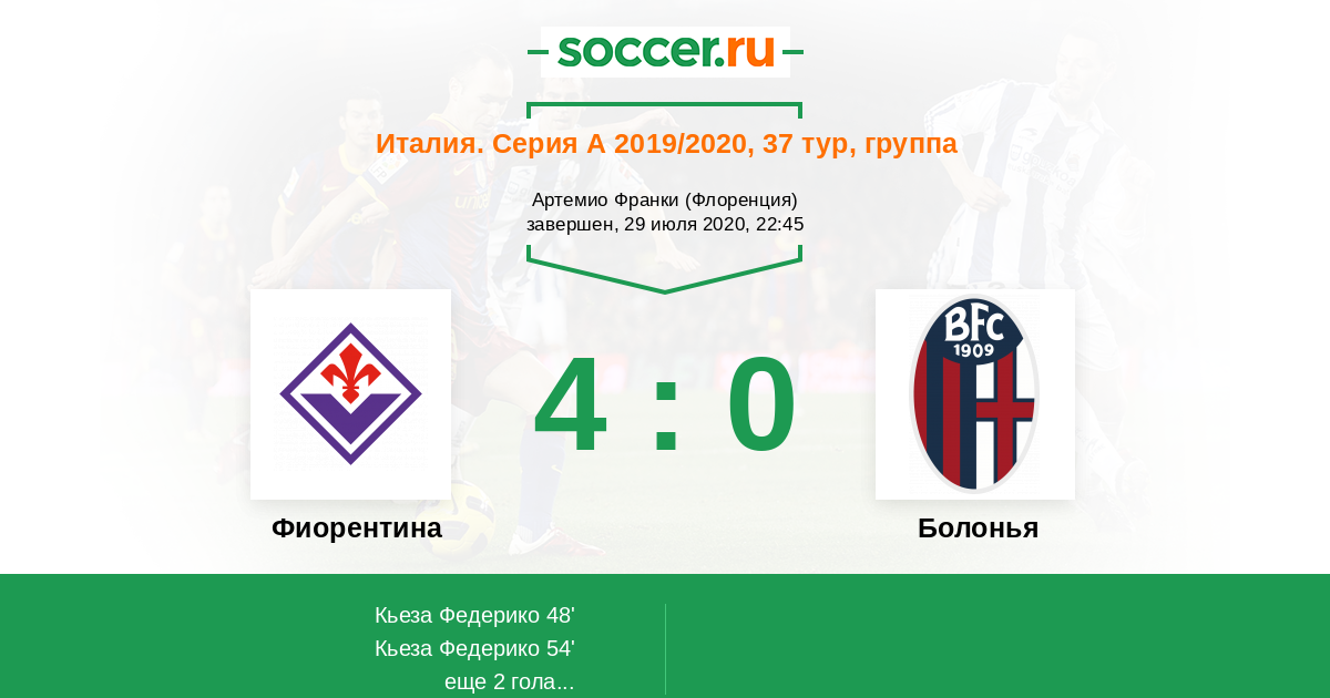 Протокол матча Фиорентина против Болонья