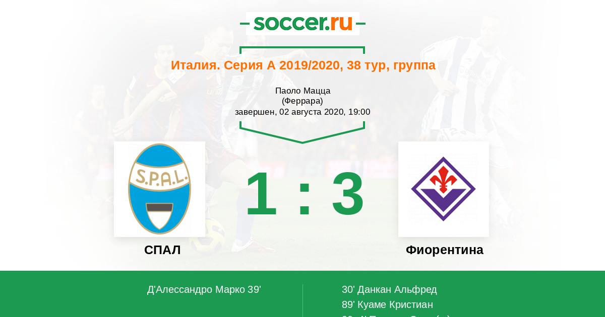 Протокол матча СПАЛ против Фиорентина