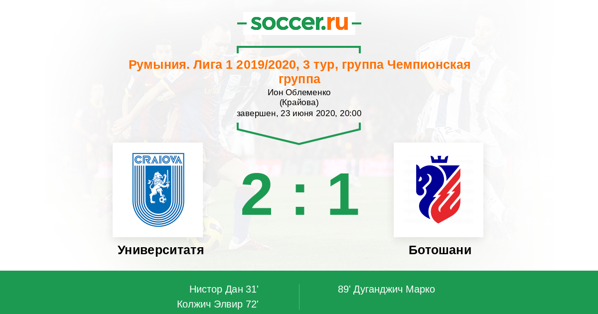Протокол матча Университатя Крайова против Ботошани