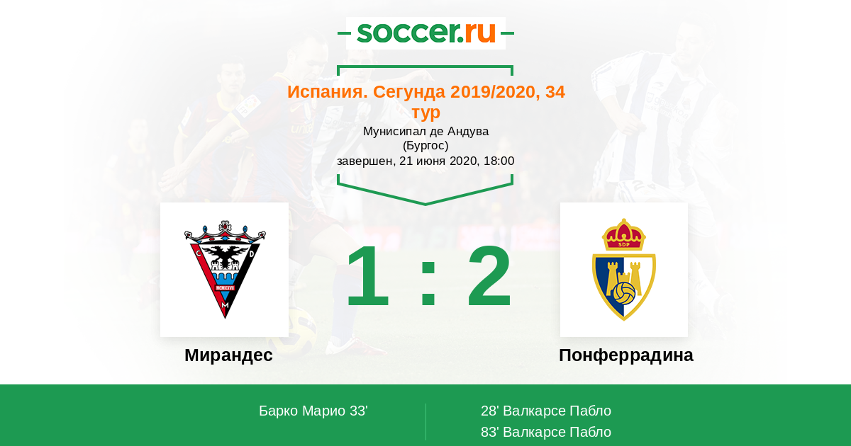 Протокол матча Мирандес против Понферрадина
