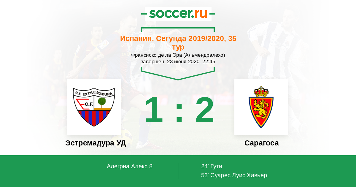 Протокол матча Эстремадура УД против Сарагоса