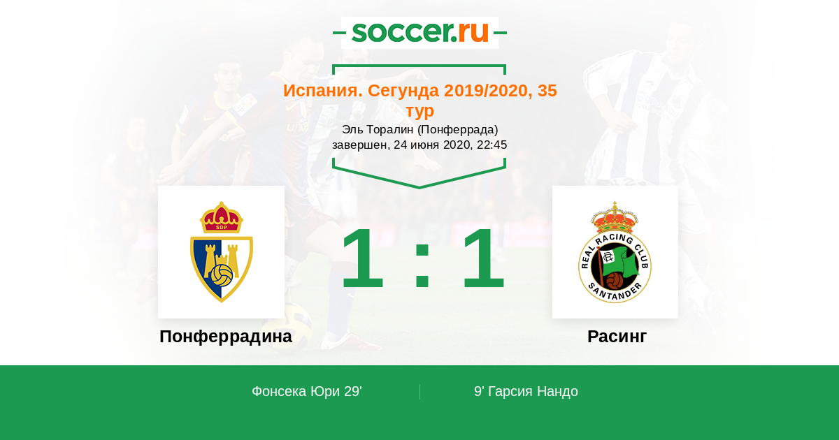 Протокол матча Понферрадина против Расинг