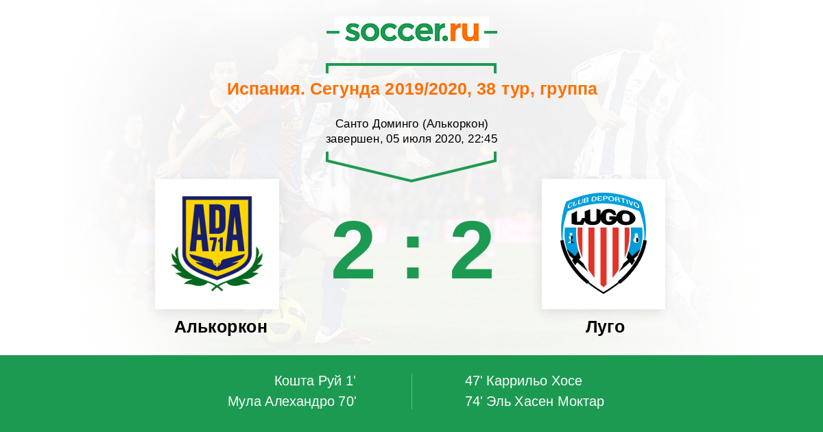 Протокол матча Алькоркон против Луго