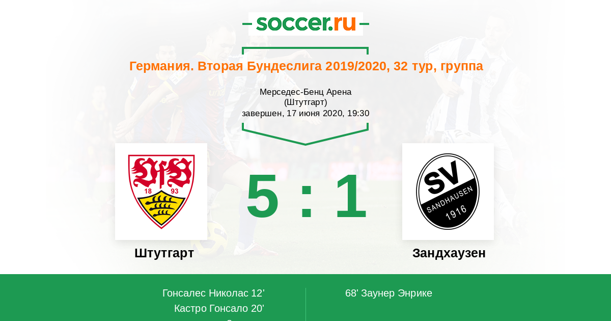 Протокол матча Штутгарт против Зандхаузен