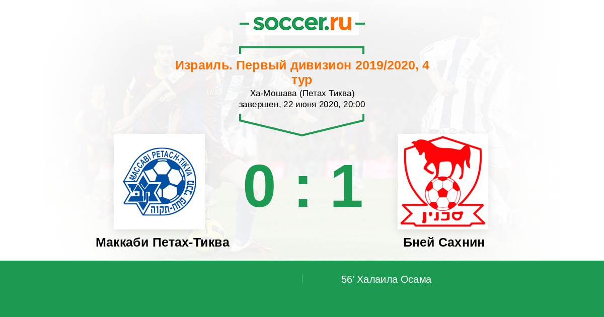 Протокол матча Маккаби Петах-Тиква против Бней Сахнин