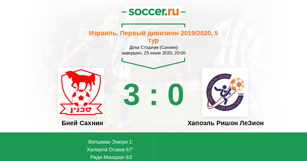 Протокол матча Бней Сахнин против Хапоэль Ришон ЛеЗион
