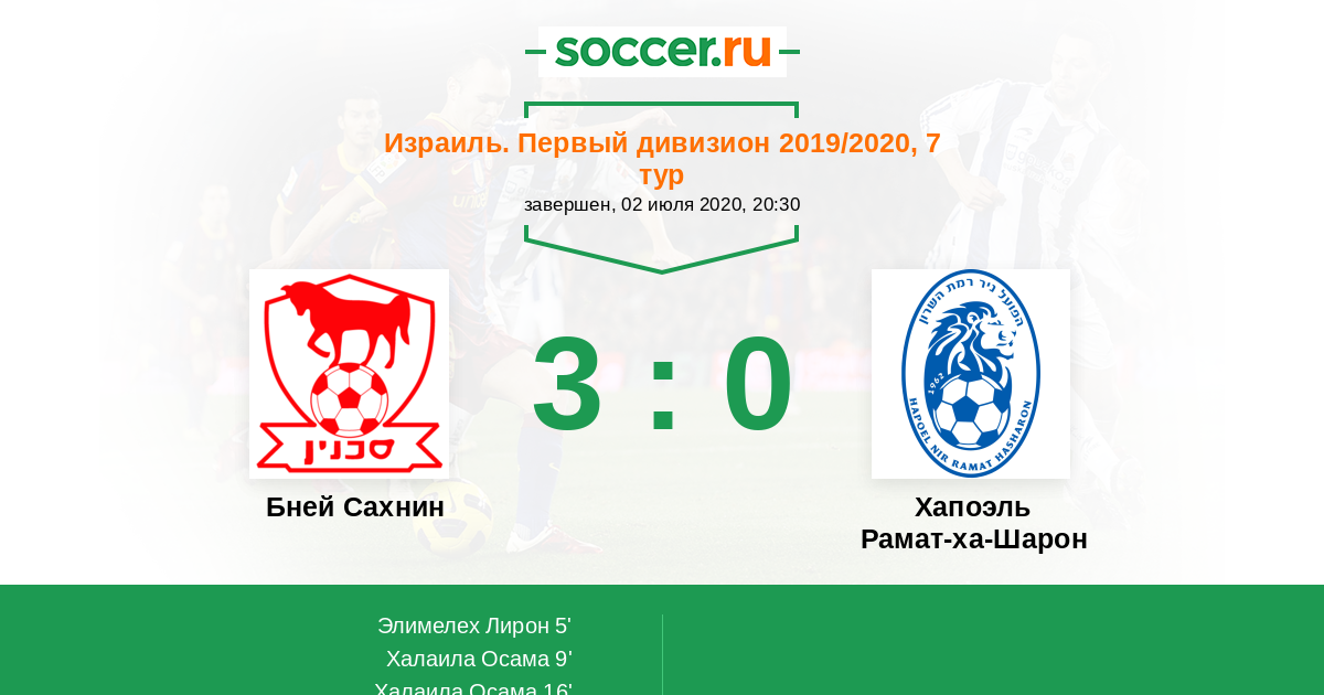 Протокол матча Бней Сахнин против Хапоэль Рамат-ха-Шарон