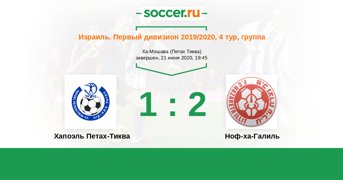Израиль. Первый дивизион 14.02.2020 Хапоэль Петах-Тиква Логотип футбольный клуб Хапоэль Петах-Тиква 0:0 Логотип футбольный клуб Ноф-ха-Галиль (Назарет Иллит) Ноф-ха-Галиль