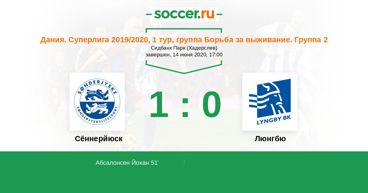 Протокол матча Сённерйюск против Люнгбю