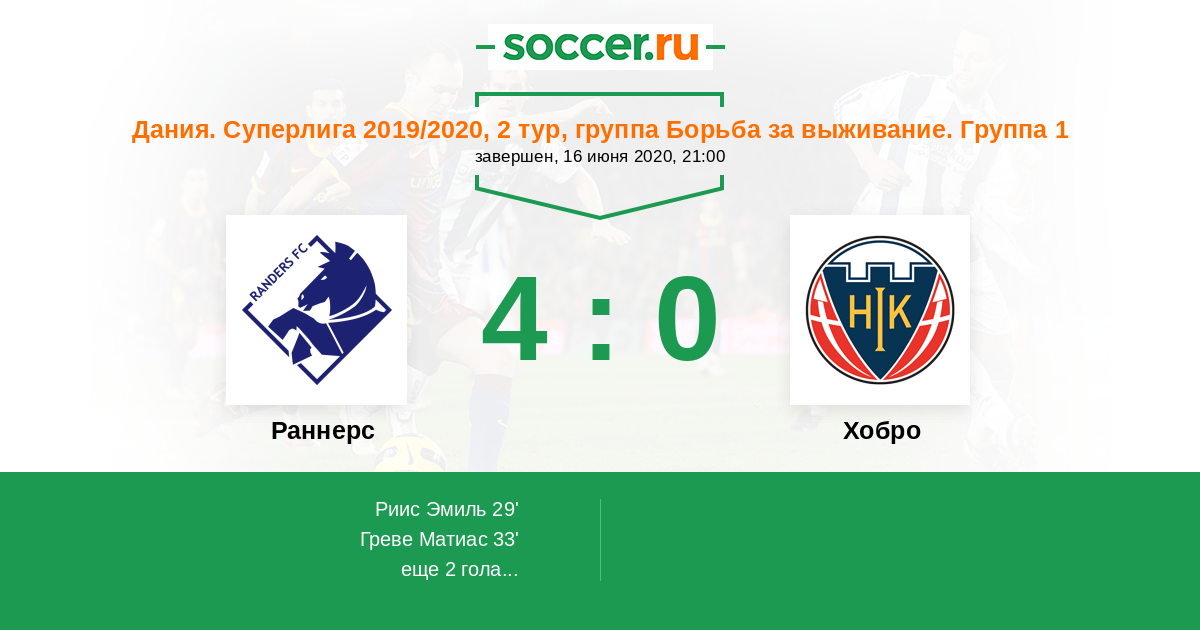 Протокол матча Раннерс против Хобро