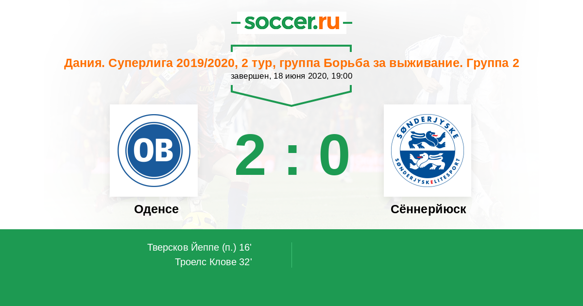 32' (2:0) Троелс Клове (23) (Скьелвик Йорген (16))
