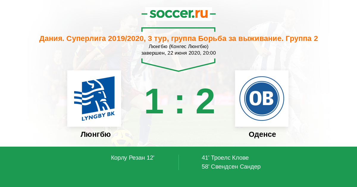 Протокол матча Люнгбю против Оденсе