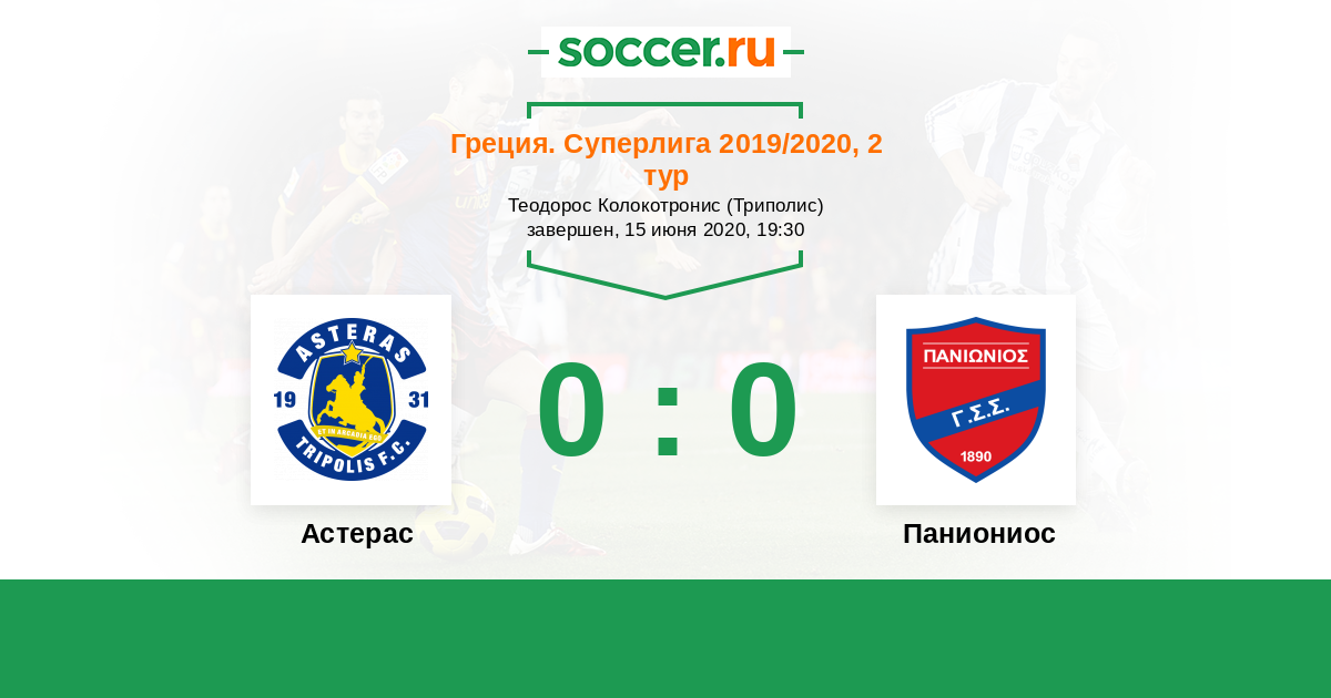 Протокол матча Астерас против Паниониос