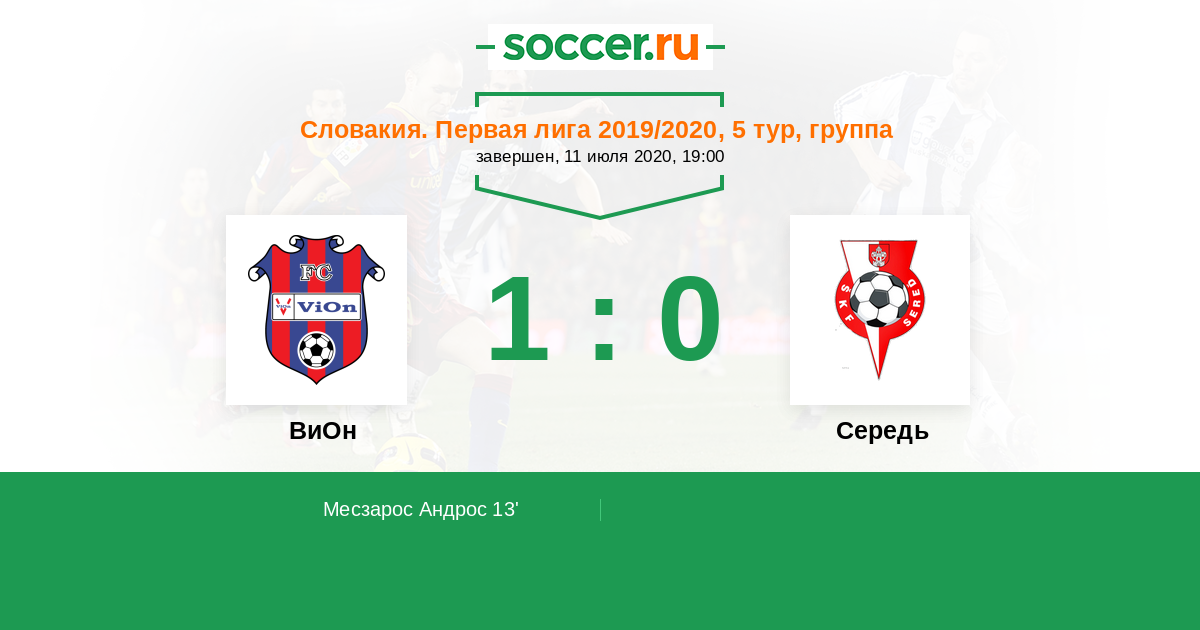 Протокол матча ВиОн против Середь