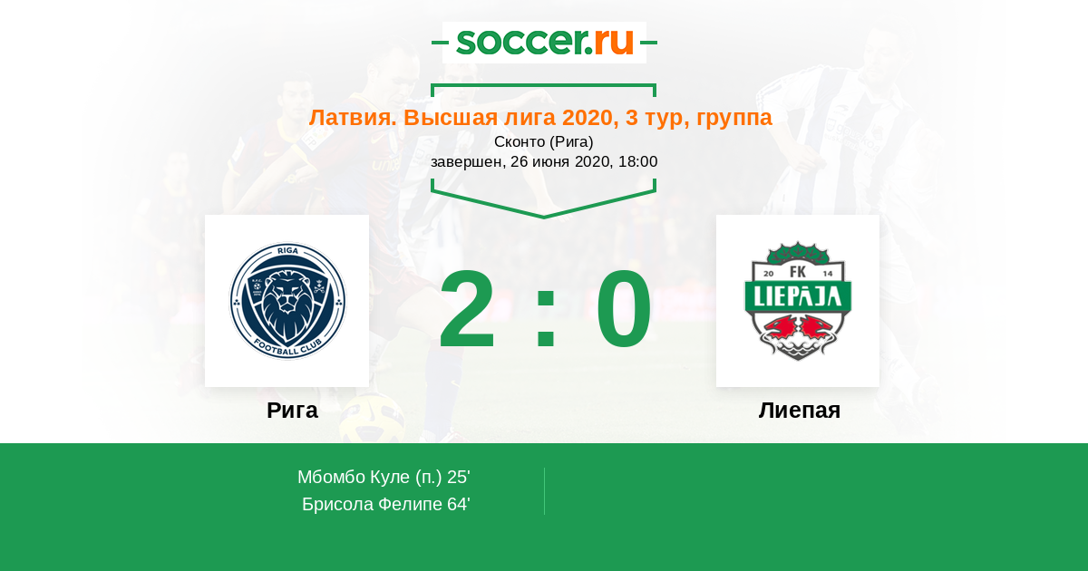 Протокол матча Рига против Лиепая