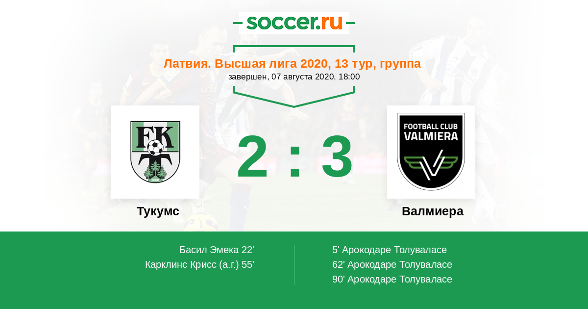 Протокол матча Тукумс против Валмиера