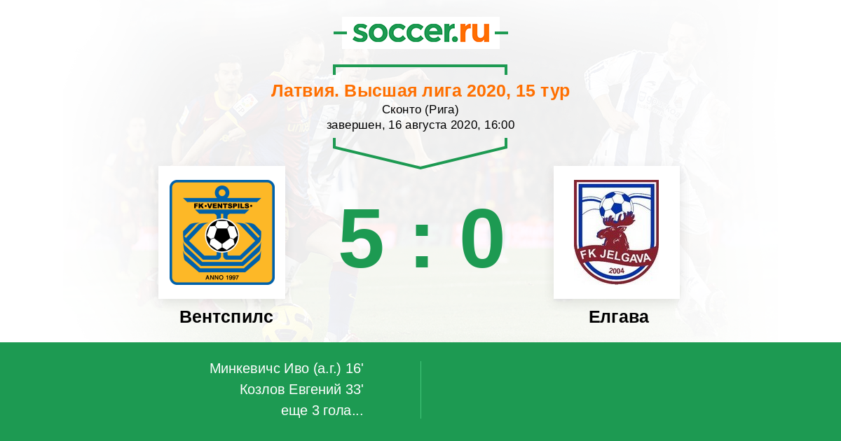 Протокол матча Вентспилс против Елгава