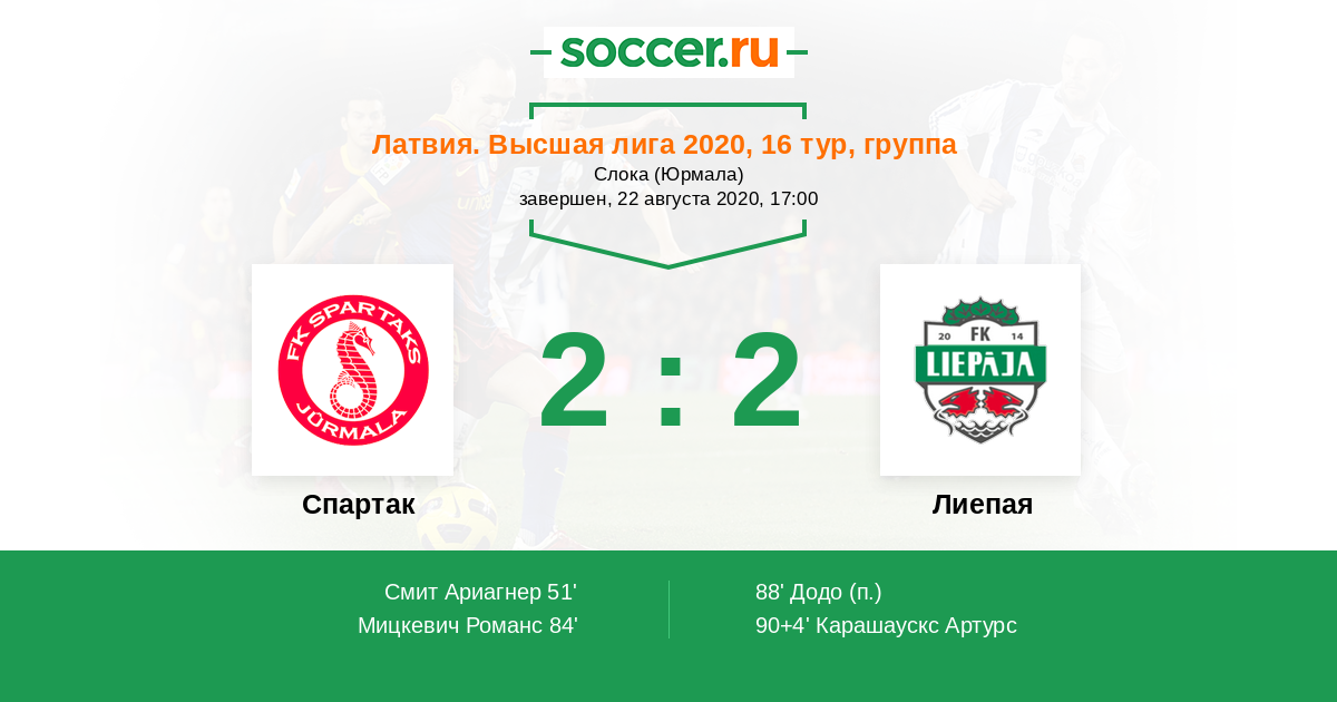 Гол90+4' (2:2) Карашаускс Артурс (11)