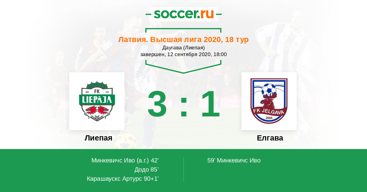 Протокол матча Лиепая против Елгава
