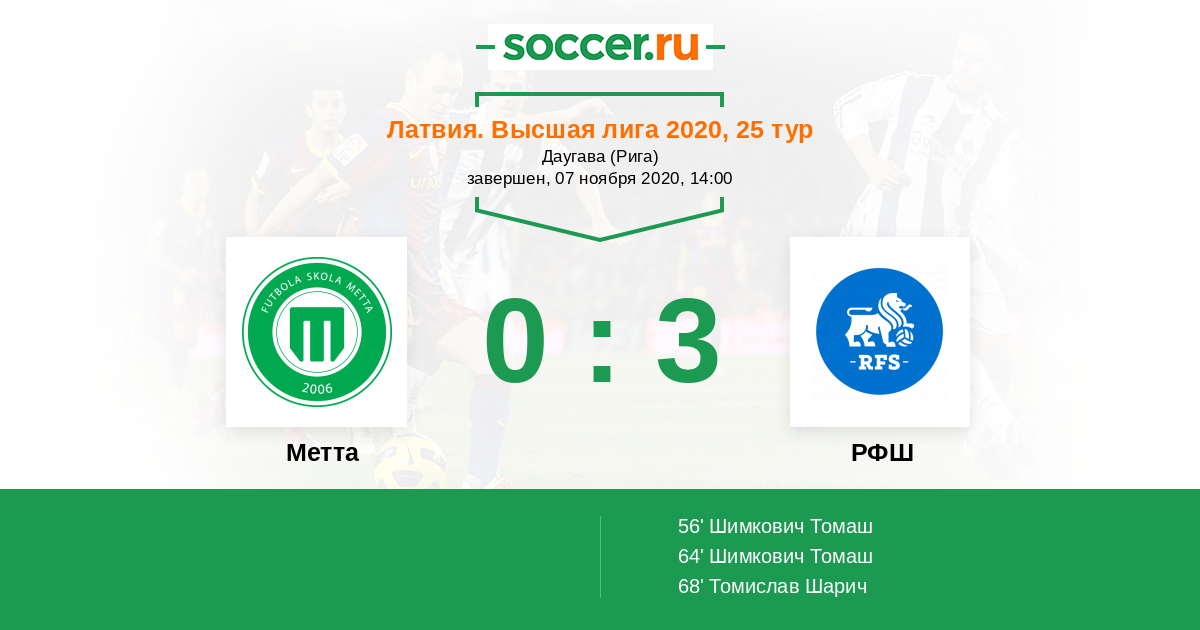 Протокол матча Метта против РФШ