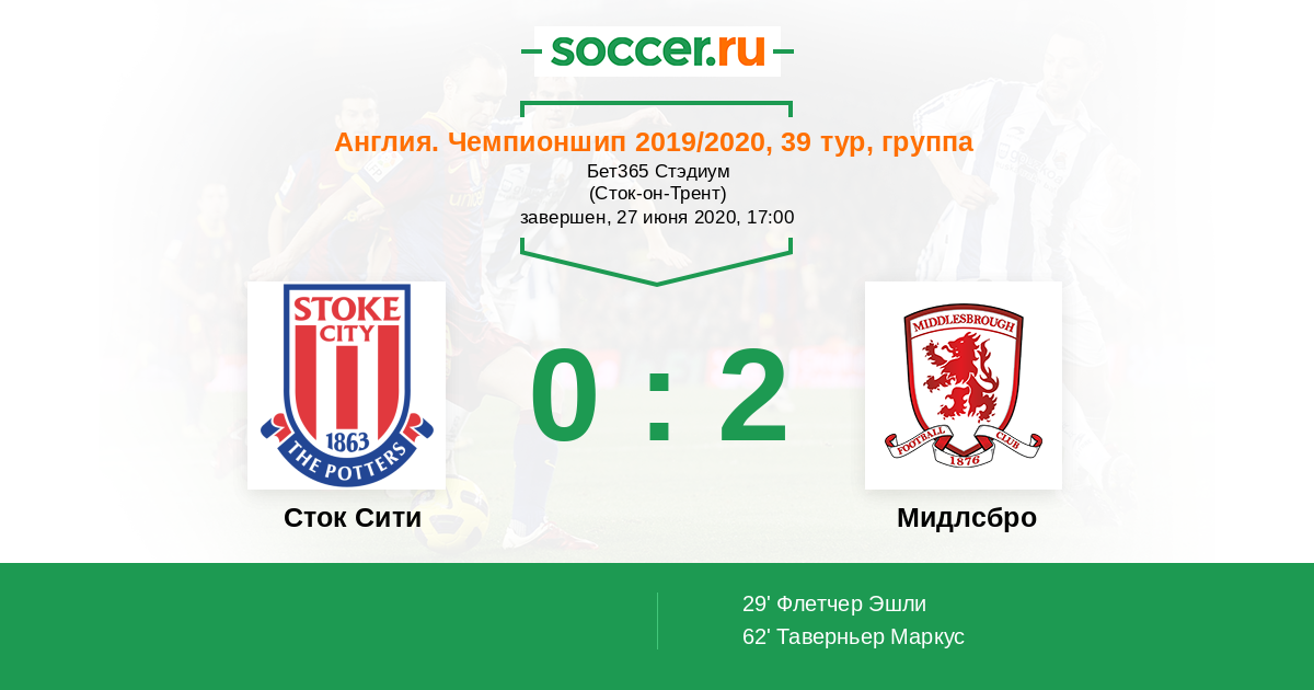 Протокол матча Сток Сити против Мидлсбро