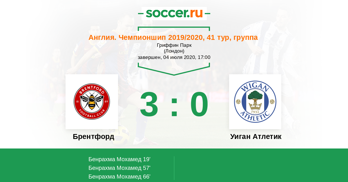 Протокол матча Брентфорд против Уиган Атлетик