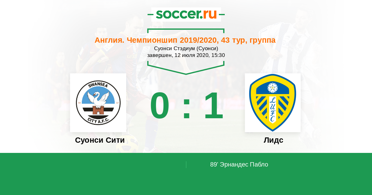 Протокол матча Суонси Сити против Лидс