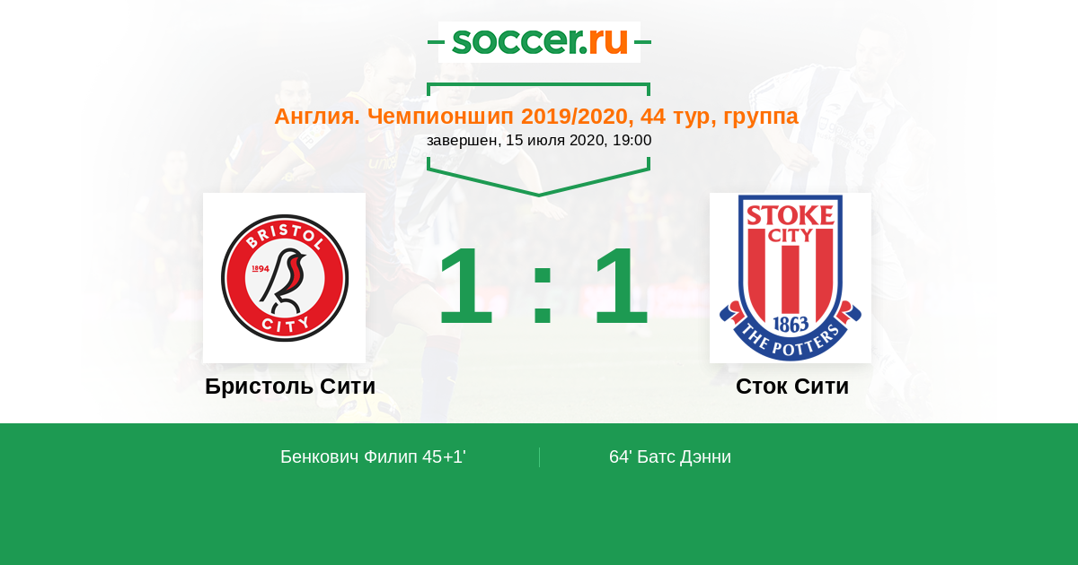 Протокол матча Бристоль Сити против Сток Сити
