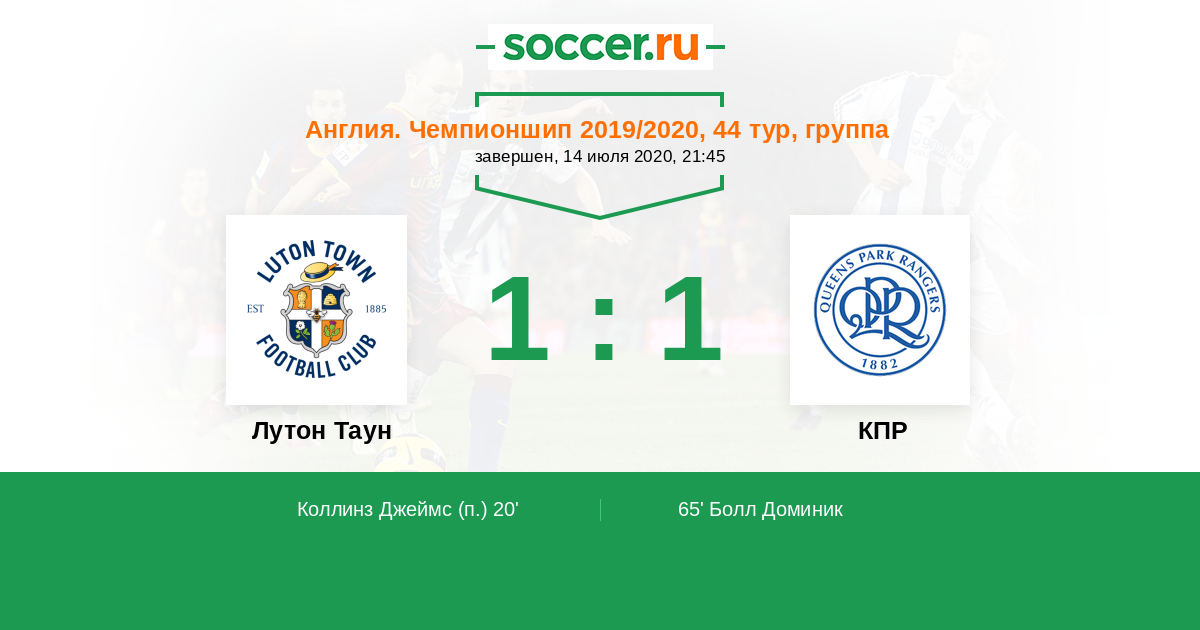 Протокол матча Лутон Таун против КПР