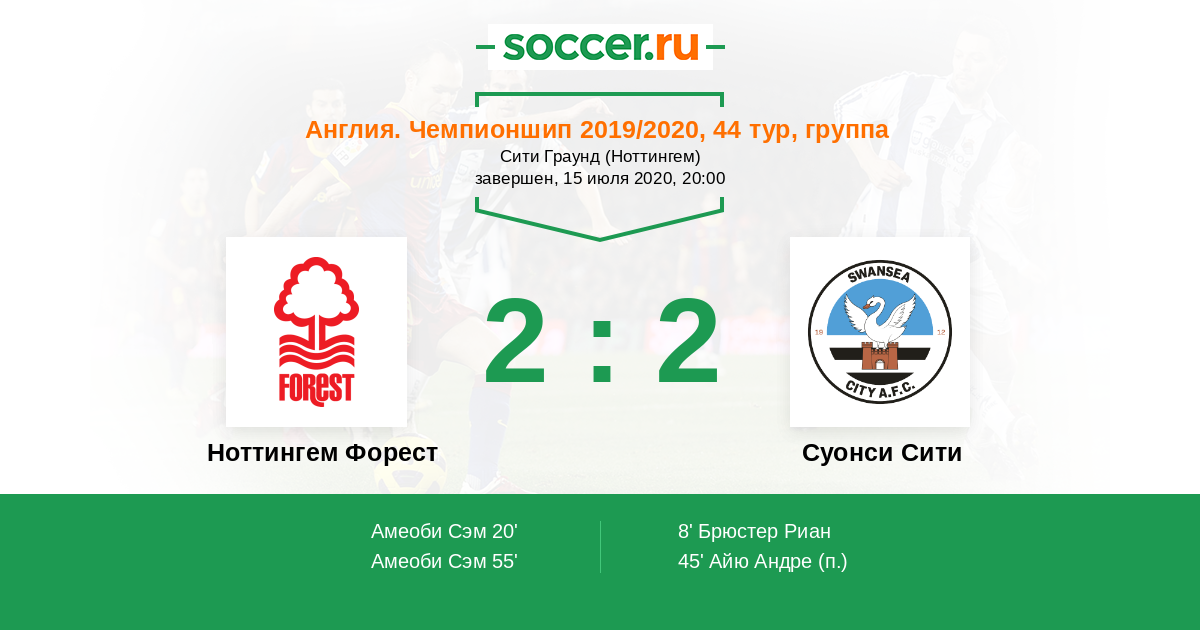 20' (1:1) Амеоби Сэм (19) (Рибейро Юри (2))