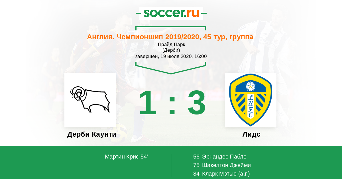 Протокол матча Дерби Каунти против Лидс