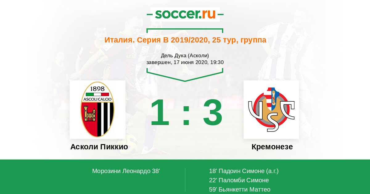 59' (1:3) Бьянкетти Маттео (15) (Паломби Симоне (11))