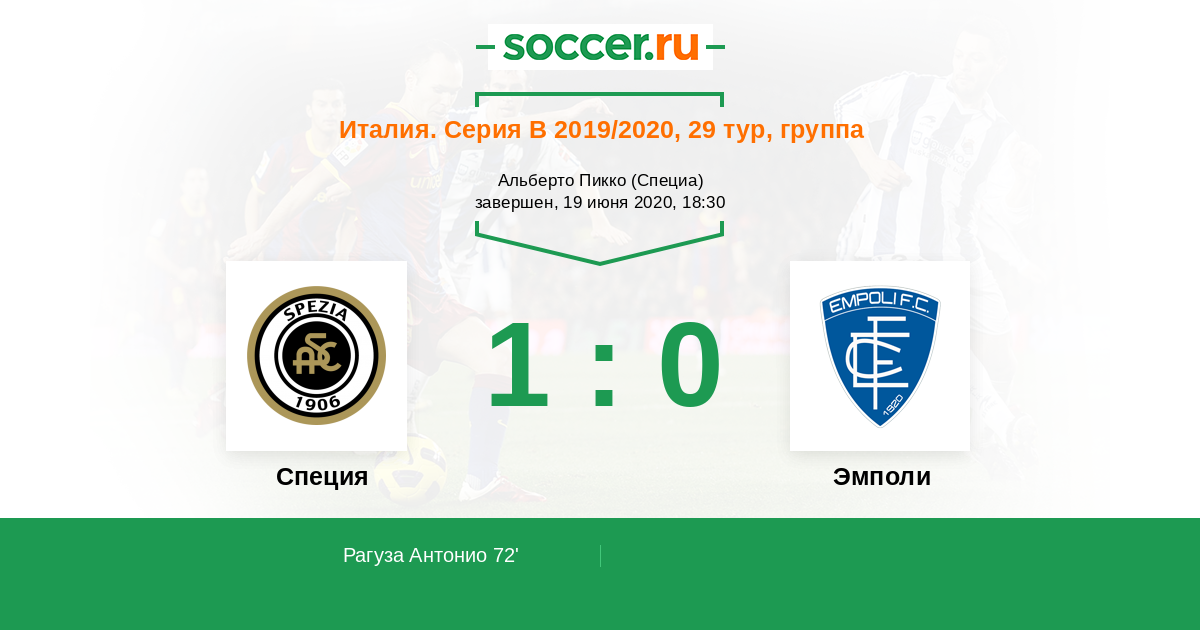 Протокол матча Специя против Эмполи