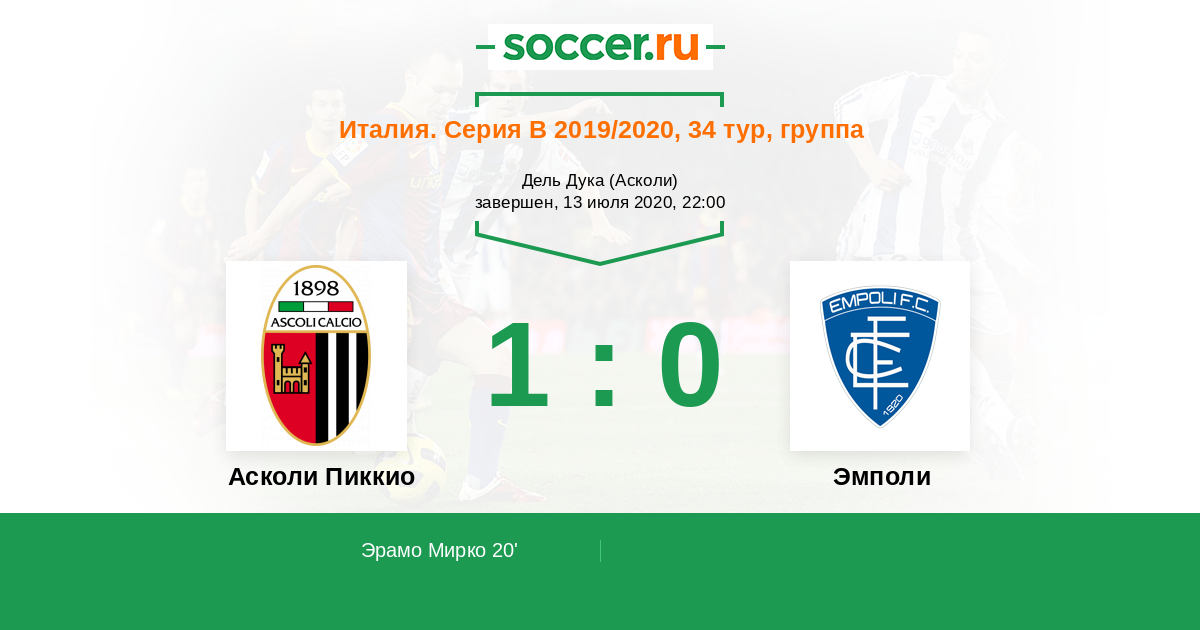 20' (1:0) Эрамо Мирко (27) (Серникола Леонардо (17))